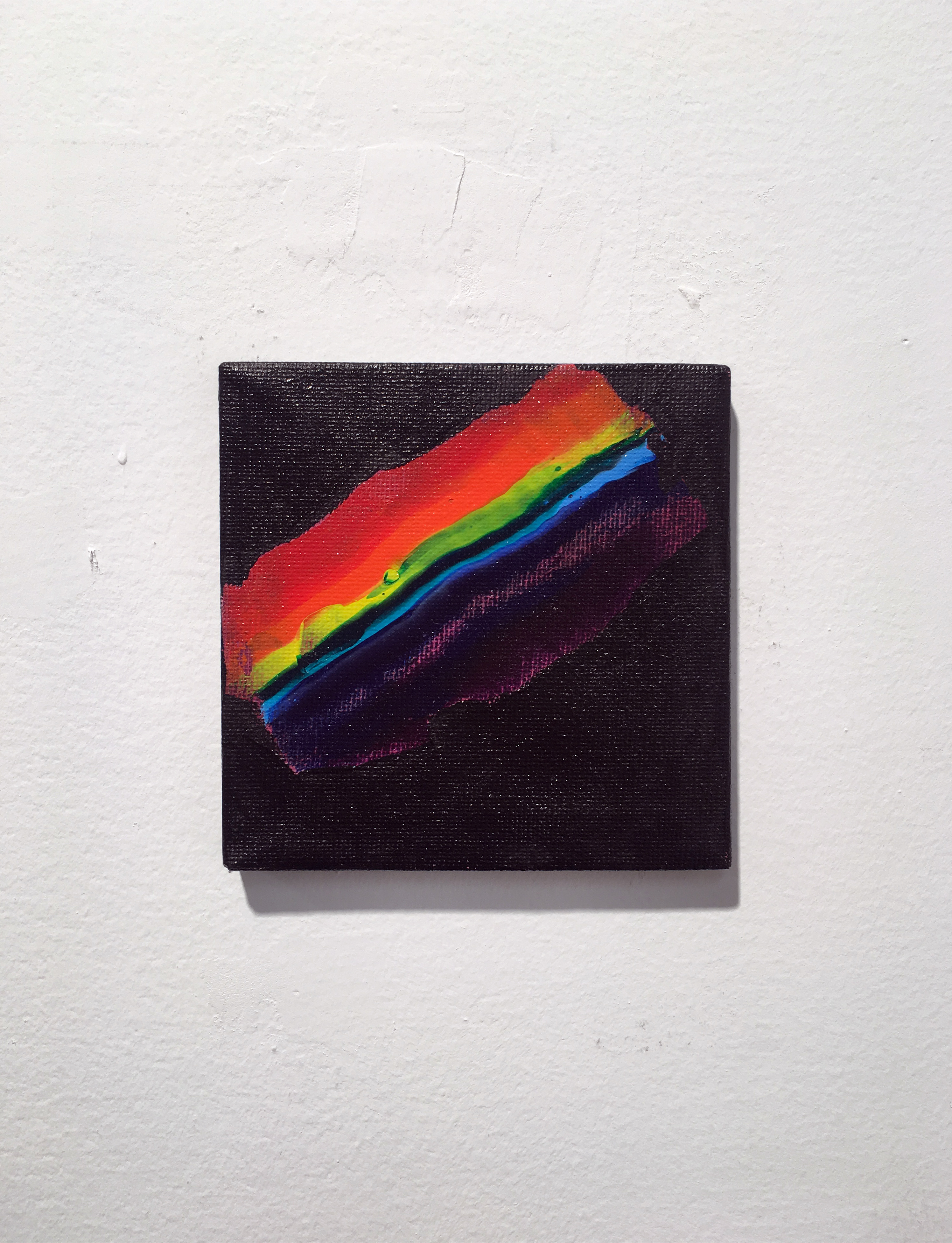 “Private Rainbows” (2017) is a screen-recorded slideshow that documents fleeting appearances of small rainbows within the parameters of my apartment. A "phantom finger" swipes and zooms through over 200 images and videos that span six months, from an initial chance encounter to attempts at replicating Newton’s prism experiment. Played on a household monitor in landscape orientation, the vertical edges of the captured iPhone image are left evident, drawing attention to framing, seeing, and the inherent limitations of representation. The image exists not as an objective reality, but as a mediated experience shaped by the technology and the context in which it is viewed.